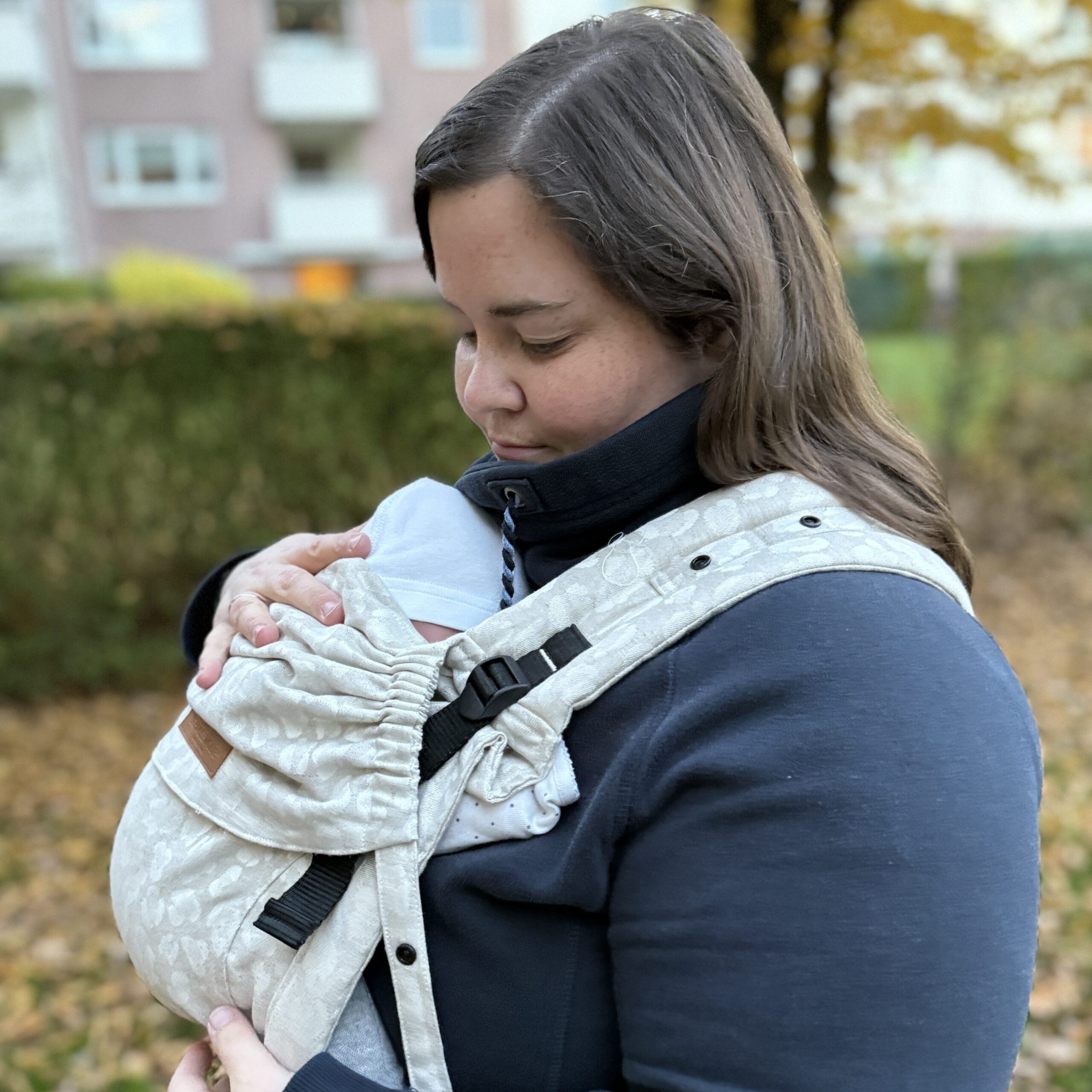 So stellte sich heraus, dass ein Tragetuch, wie von mir favorisiert, gar nicht zu mir passte. Ich testete verschiedenste Systeme und fand letztendlich die perfekte Trage, die zu mir und meiner Tochter passte.